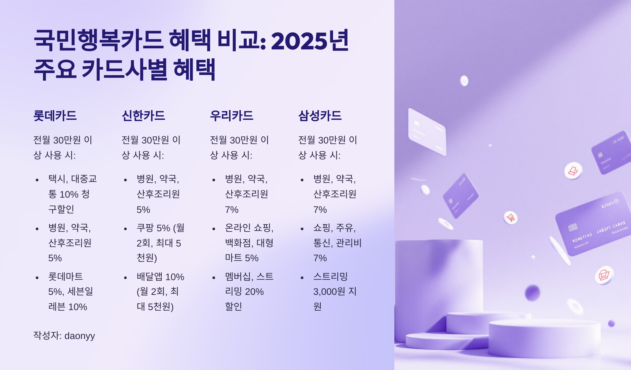 2025년 기준 주요 카드사별 국민행복카드 혜택은 아래와 같습니다: